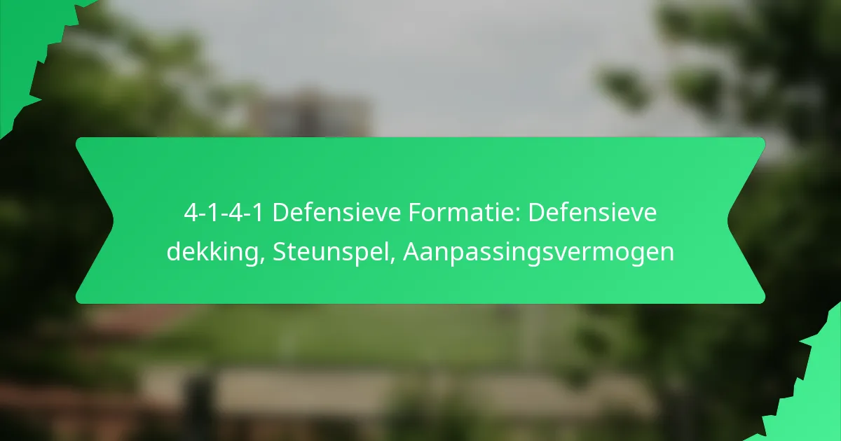 De 4-1-4-1 defensieve formatie is een tactische benadering in het voetbal die prioriteit geeft aan een solide defensieve structuur terwijl het snelle tegenaanvallen mogelijk maakt. Met zijn strategische spelerspositionering zorgt deze formatie voor sterke defensieve dekking en aanpassingsvermogen, waardoor het moeilijk wordt voor tegenstanders om de verdediging te doorbreken. Bovendien verbetert het ondersteuningsspel binnen deze opstelling de balcirculatie en creëert het kansen voor aanvallende acties.
